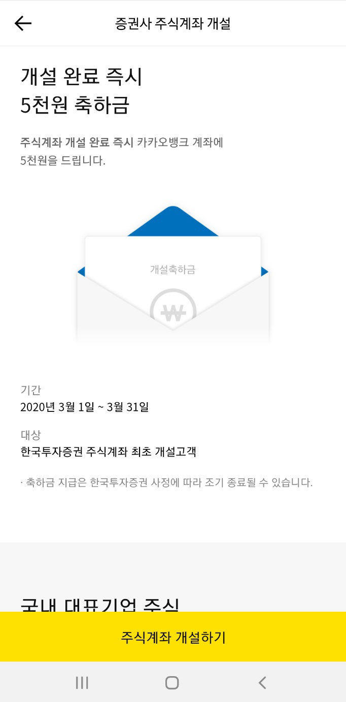 카카오뱅크를 통해서 주식계좌를 개설시 이벤트를 받기위해서는