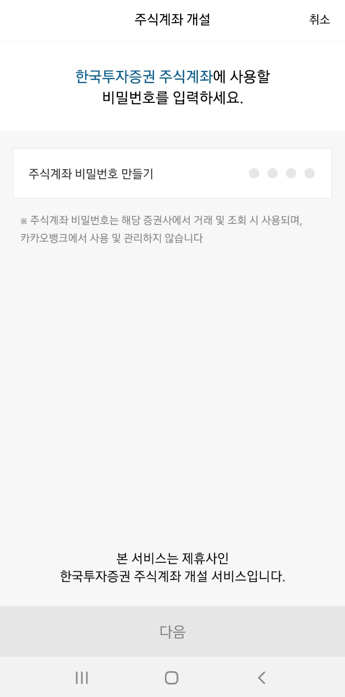 그래서 그부분을 클릭후 주식계좌를 개설을 진행하였고,